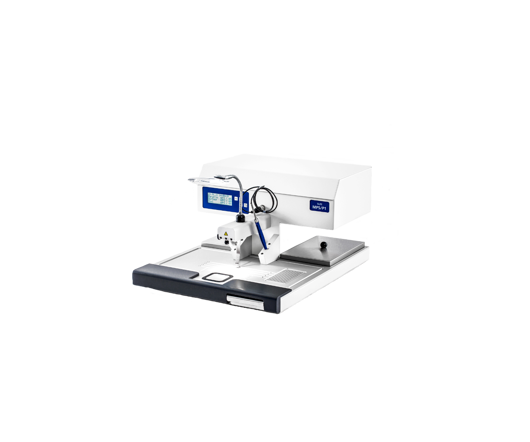 The MPS P dispensing module has a large working area with integrated cooling spot. The working area has a special drainage system and guides spare paraffin into the extractable collection tray. The surface remains clean. This makes working and cleaning much easier.